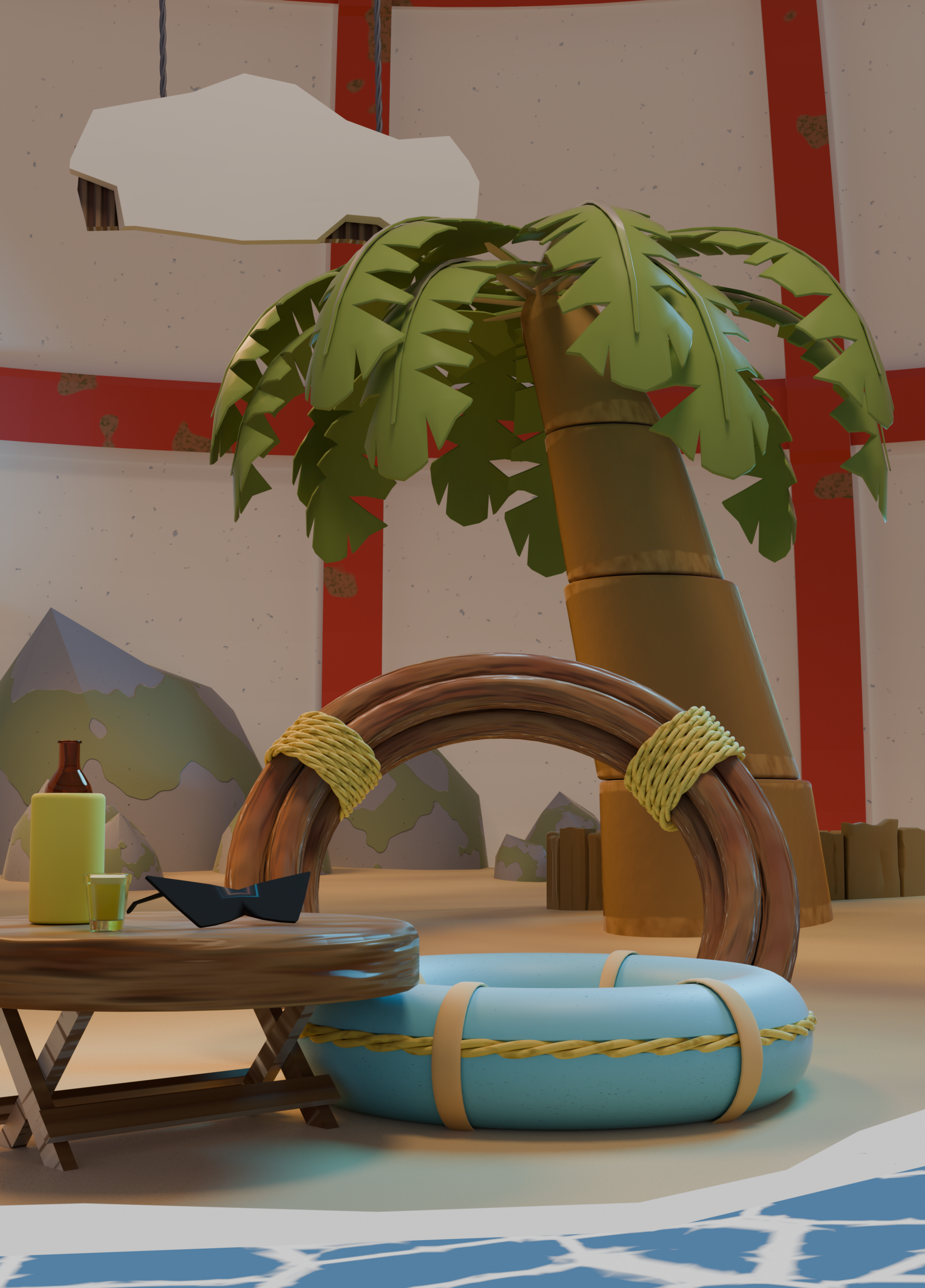 The scene was built in Blender under specific constraints regarding framing and scale. Modeling was limited to a strictly poly-by-poly workflow, with no subdivision or boolean modifiers allowed. All textures were required to be fully procedural, and lighting was restricted to Sun, Point, or Spot lights.